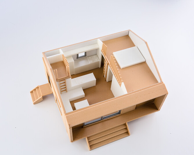The model of the tiny house was so impressive that I jumped at the opertunity to get involved with this project, and it so happened Imagin Plastics had given me a special sample of their new wood blended PLA plastic made with 10% NZ pine, developed in combination with Scion.